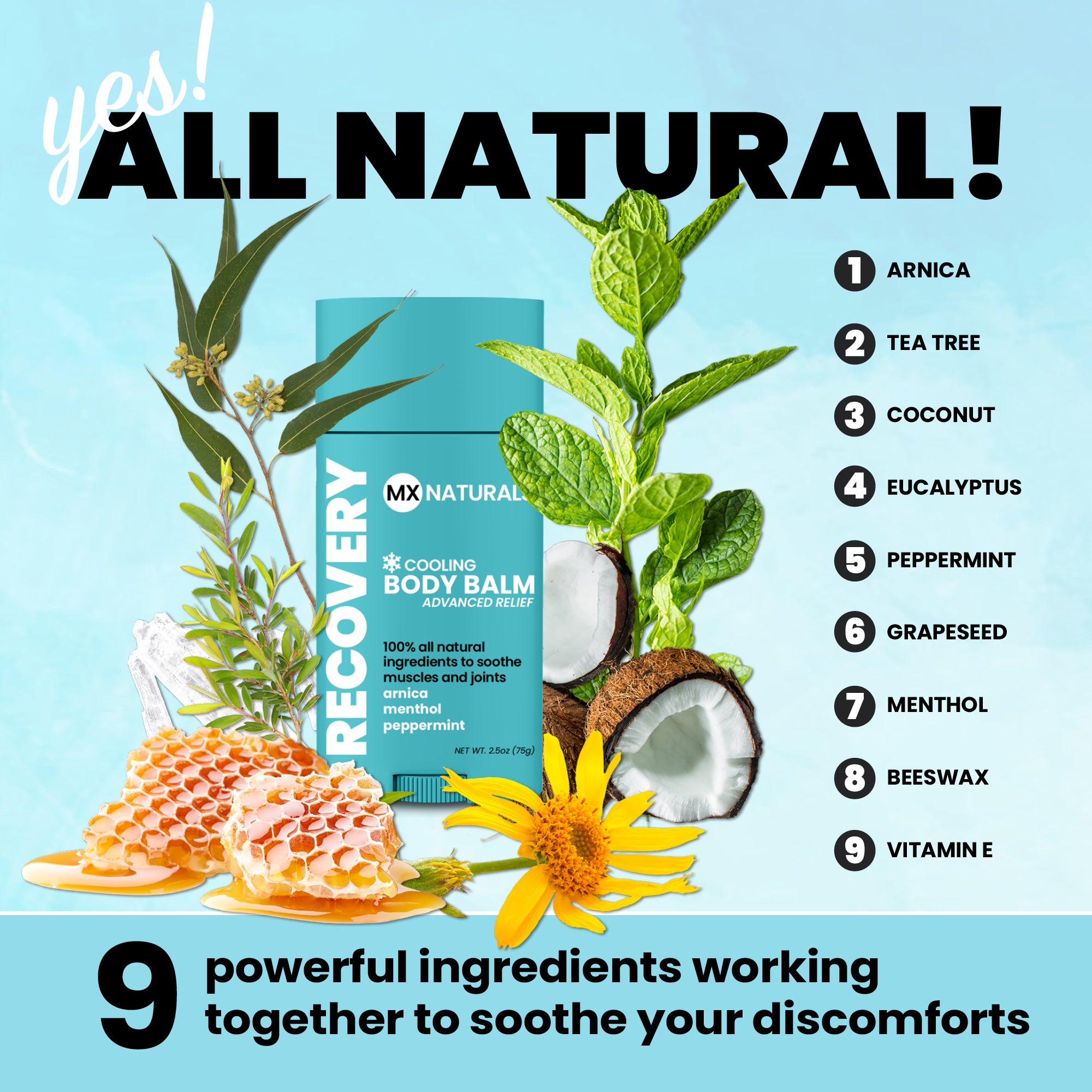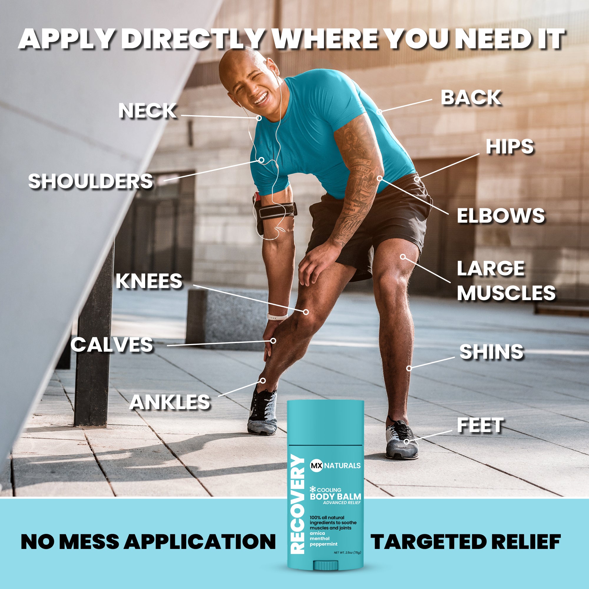 Unleash your everyday potential and recover like a pro with MX Naturals Recovery Cooling Balm, harnessing the power of all natural ingredients that provide relief of sore muscles, joints, and tendons, while promoting faster recovery and improved mobility.
