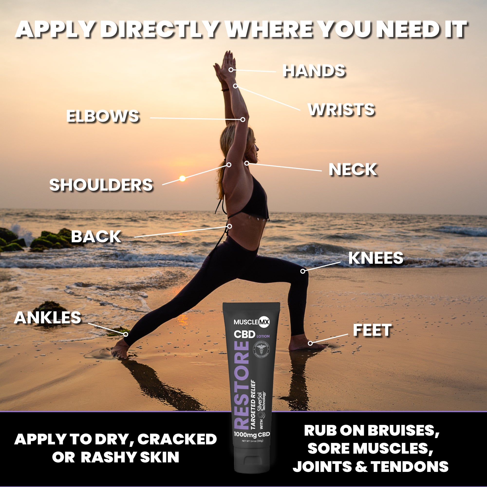Restore is simply the best on the market. This lotion goes beyond pain relief, offering a complete skin and wellness transformation. This 4-in-1 solution moisturizes, protects, repairs, and relieves. The innovative formula combines powerful CBD to soothe discomfort with nano-silver technology to fight bacteria and promote healing. Deep hydration from hyaluronic acid leaves your skin soft and supple, while advanced ingredients tackle irritation and dryness for healthier-looking skin. Restore offers comprehensive relief and rejuvenation for both your skin and well-being.